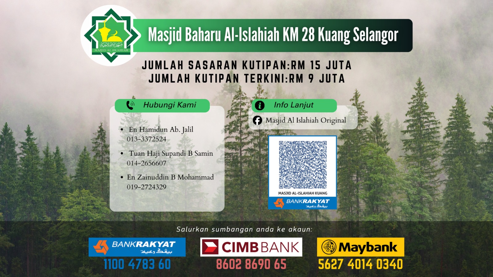 setiap sumbangan anda mendekatkan kita kepada pembinaan Masjid Al-Islahiah Kuang.